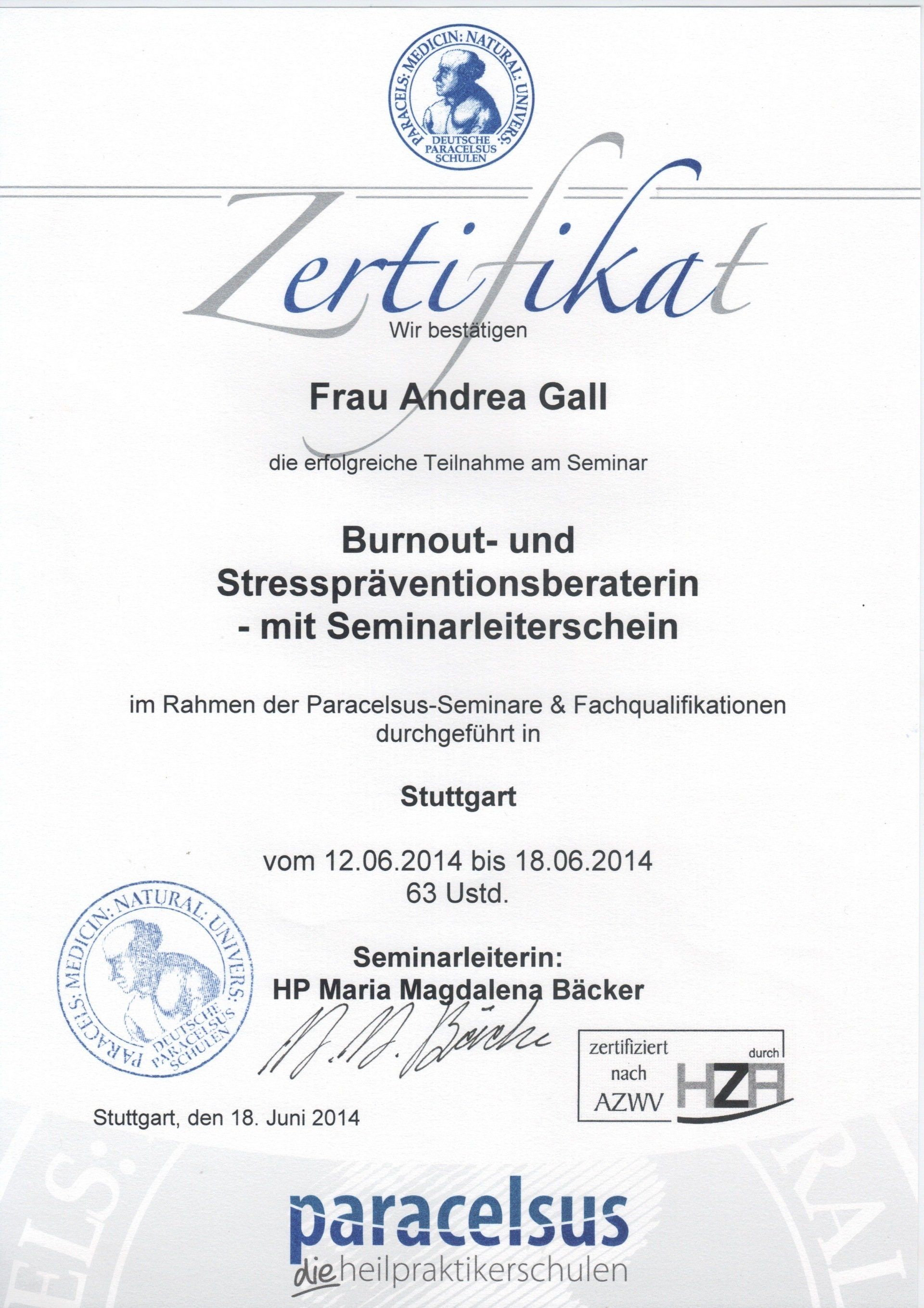 Burnout- und Stresspräventions-Beraterin mit Seminarleiterschein sowie Aufbau- und Intensivkurs
